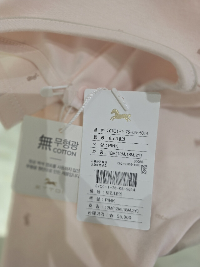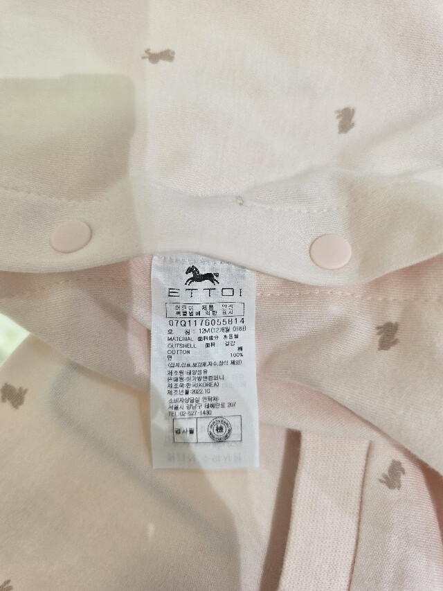 부드러운 면100 %소재의 여아 내복입니다