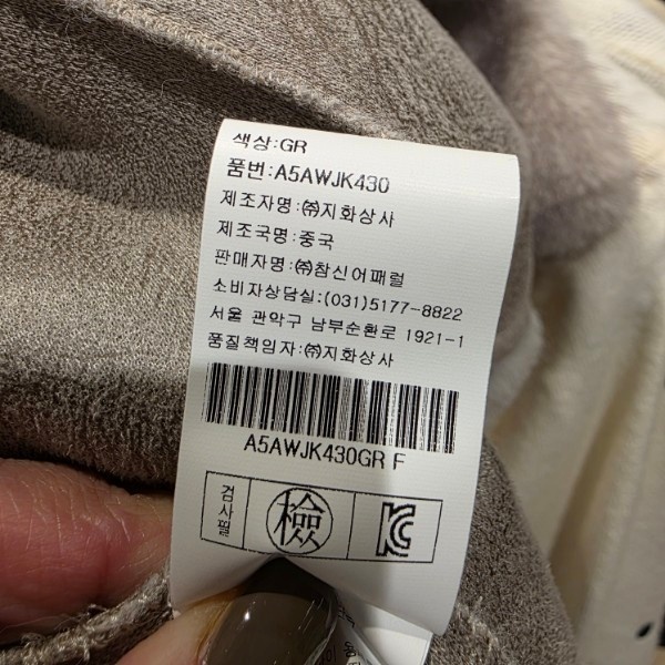 제조자 : (주)참신어패럴