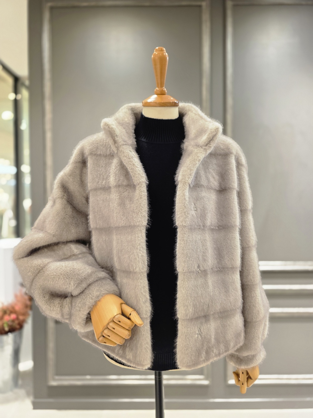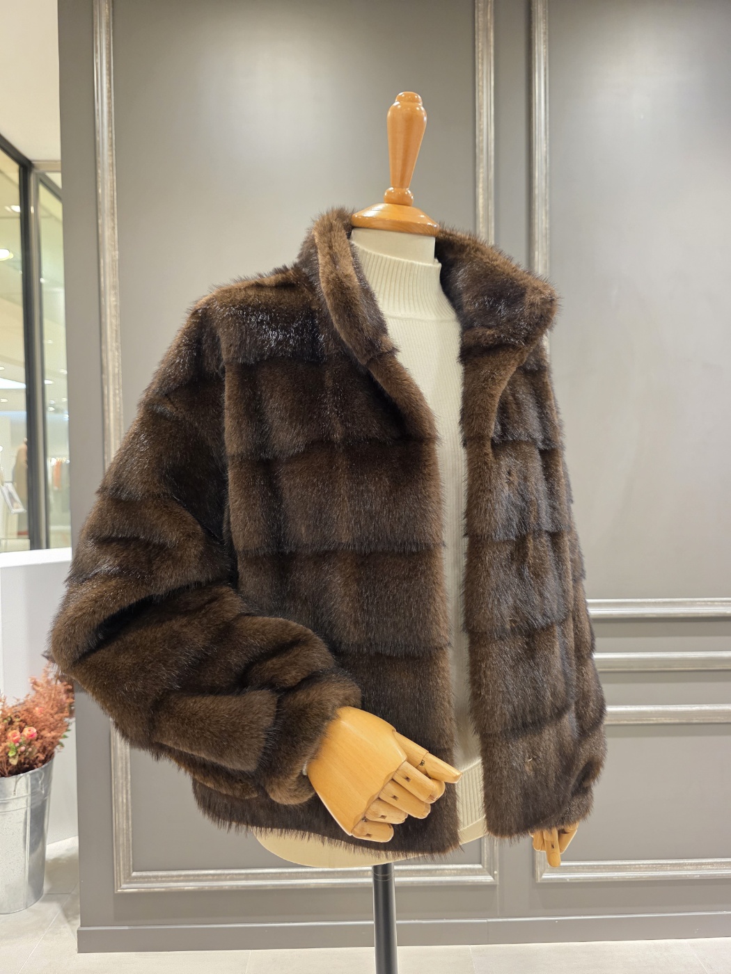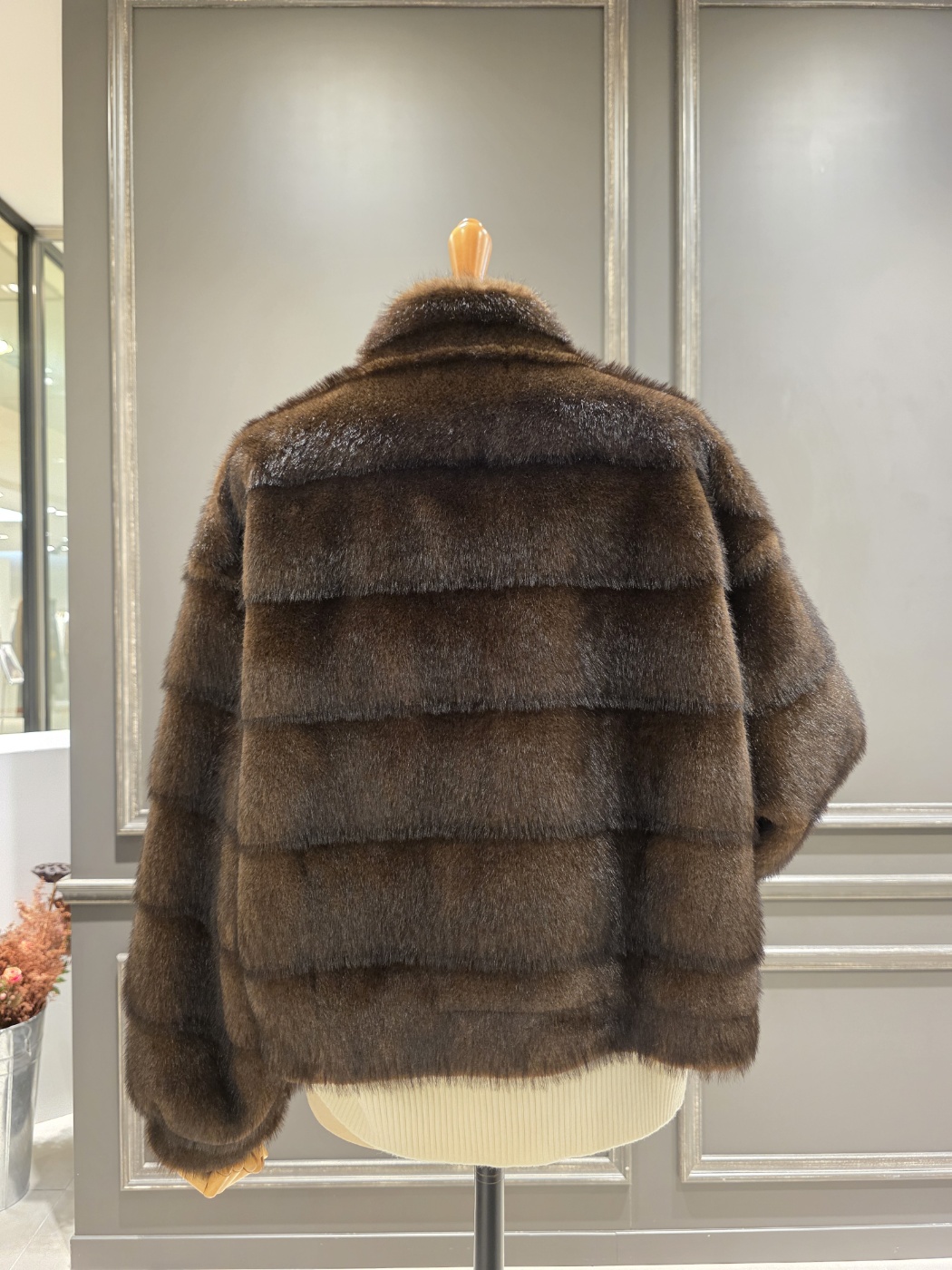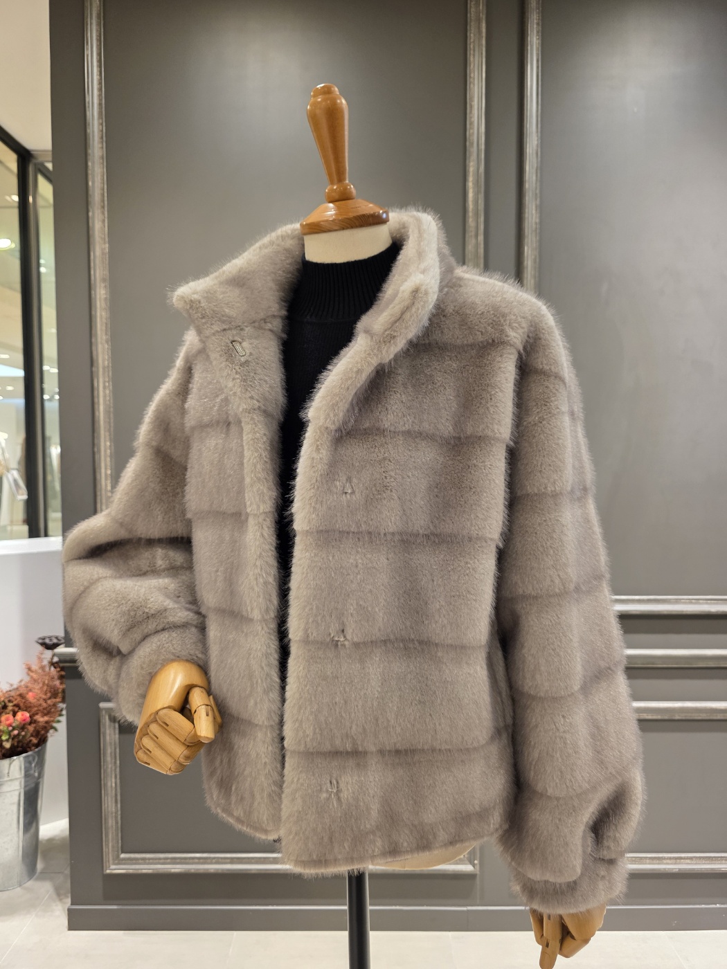 F/ W 아니베에프 신상품?하이넥 디자인의 페이크 퍼 자켓입니다