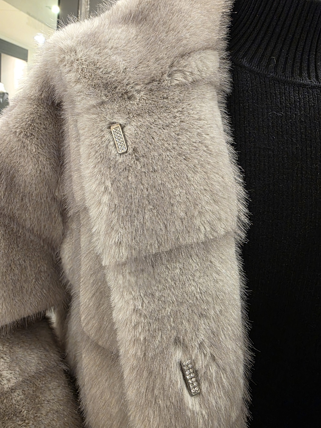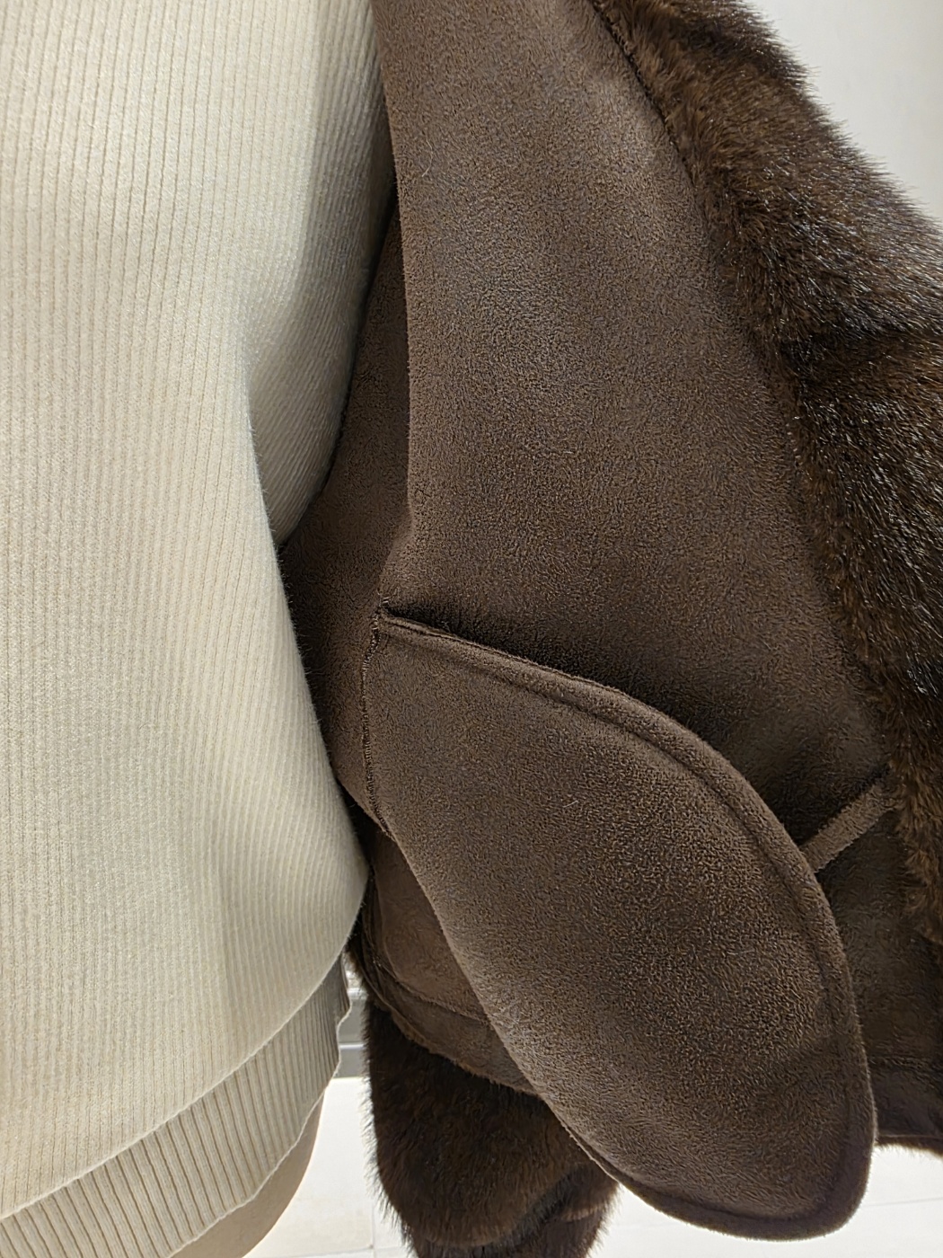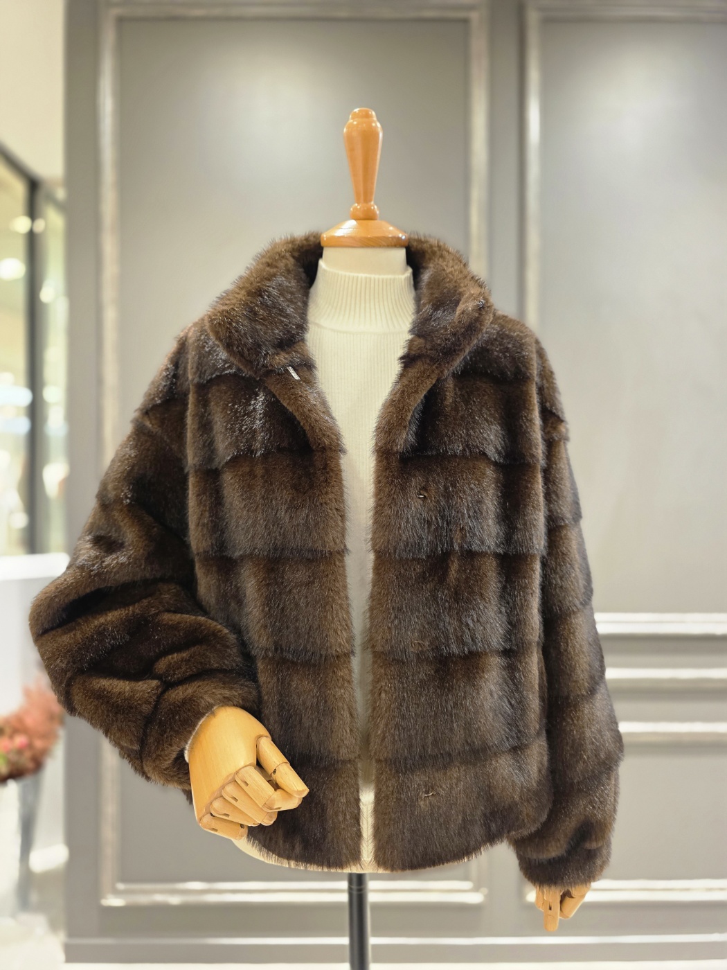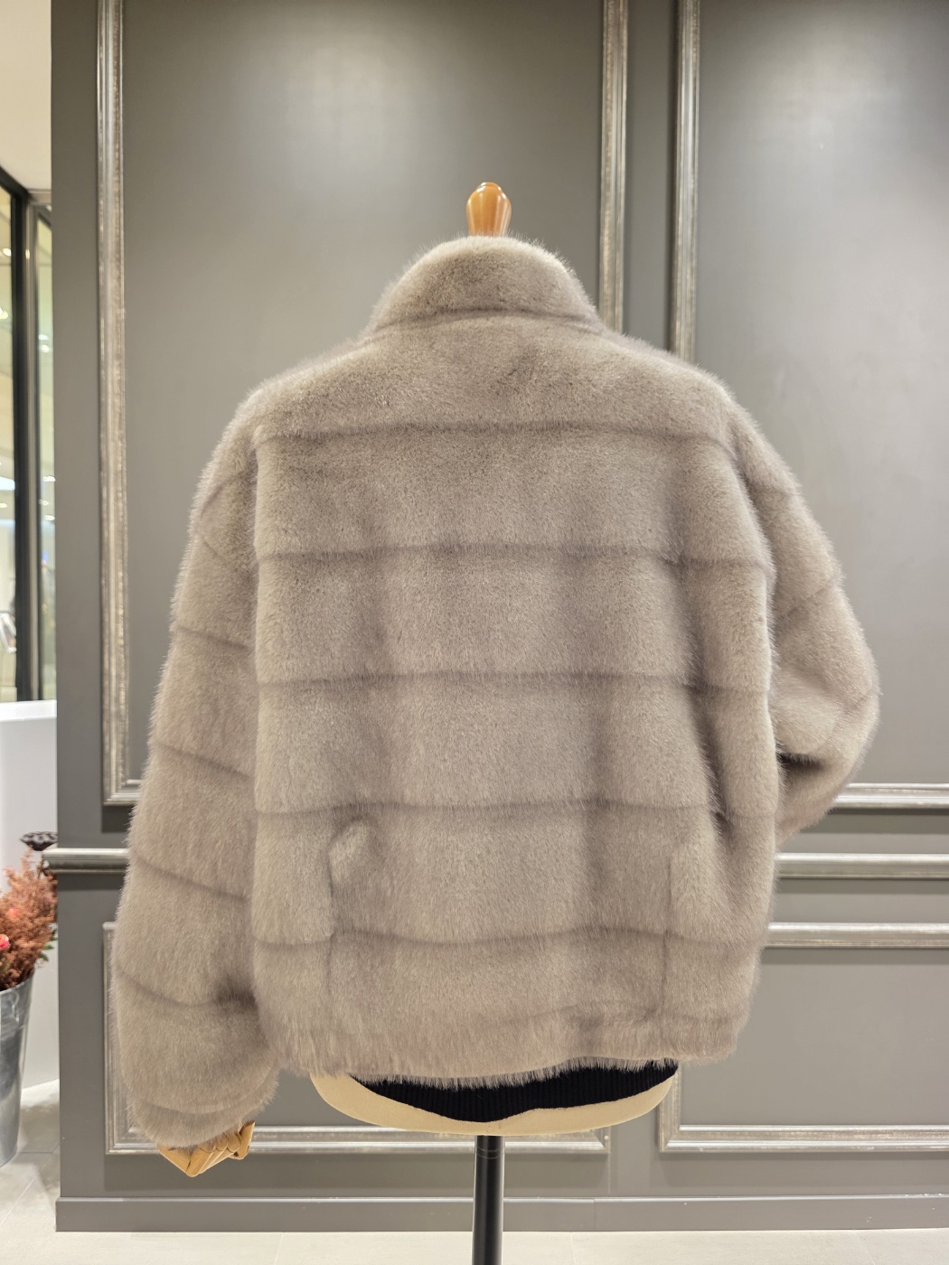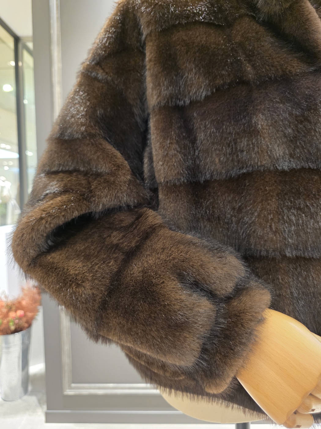 F/ W 아니베에프 신상품?하이넥 디자인의 페이크 퍼 자켓입니다