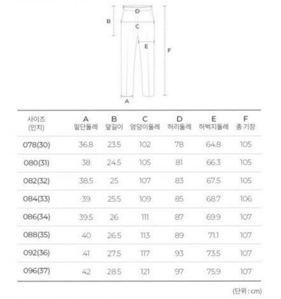 사이즈 : 78(30),80(31),82(32),84(33),86(34),88(35),92(36),96(38)