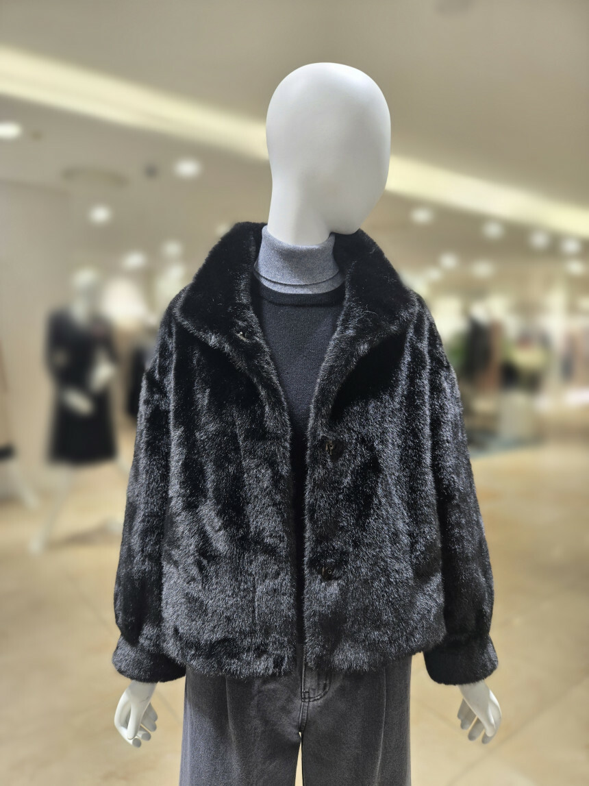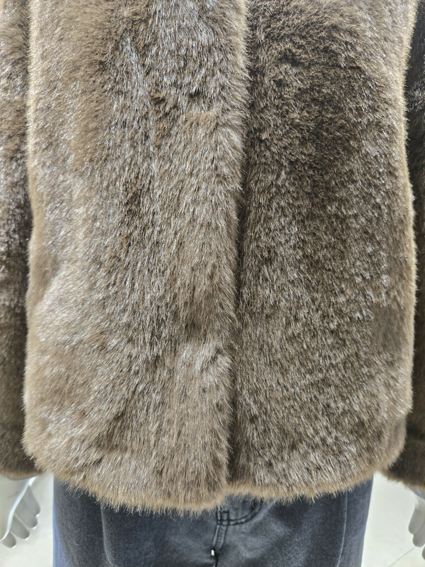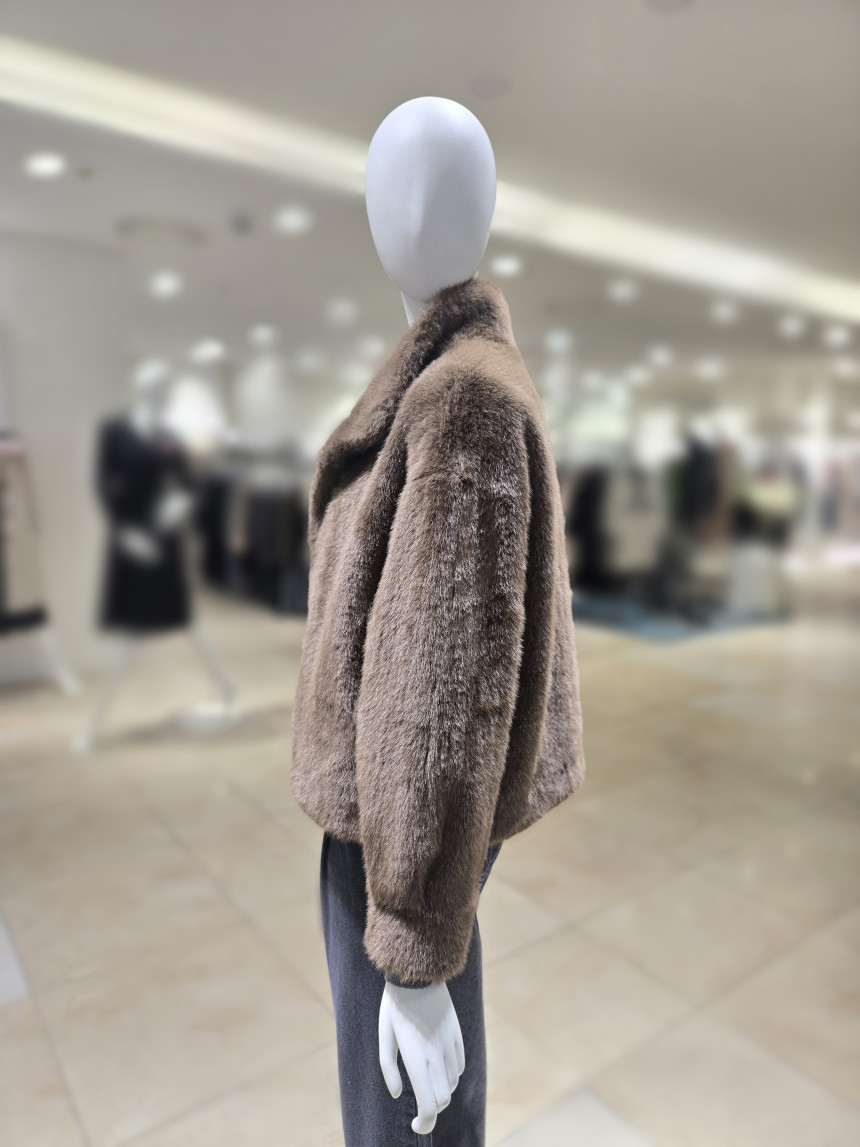 페이크 퍼 퍼프 소매 하이넥 자켓 YM5W-M603