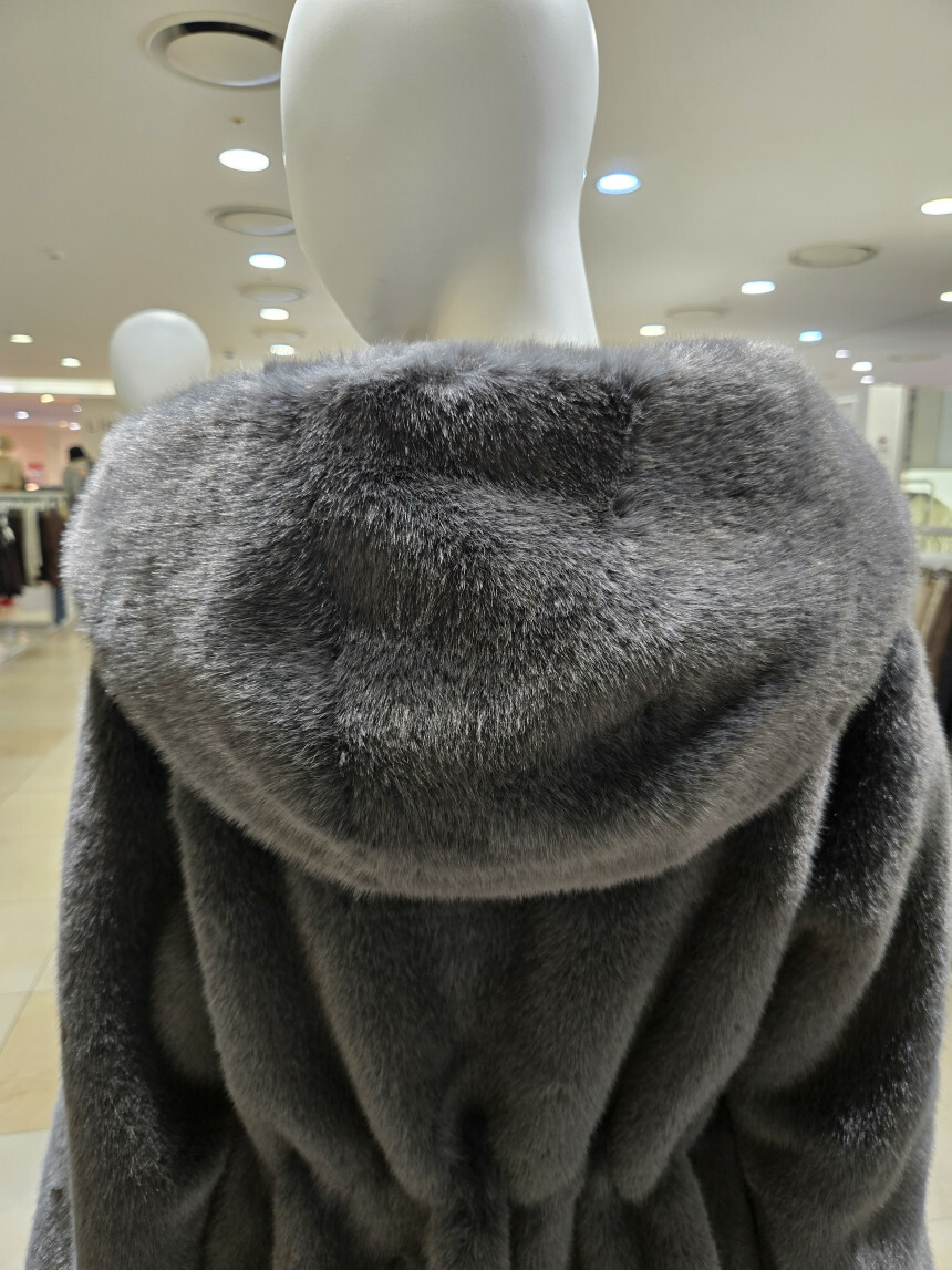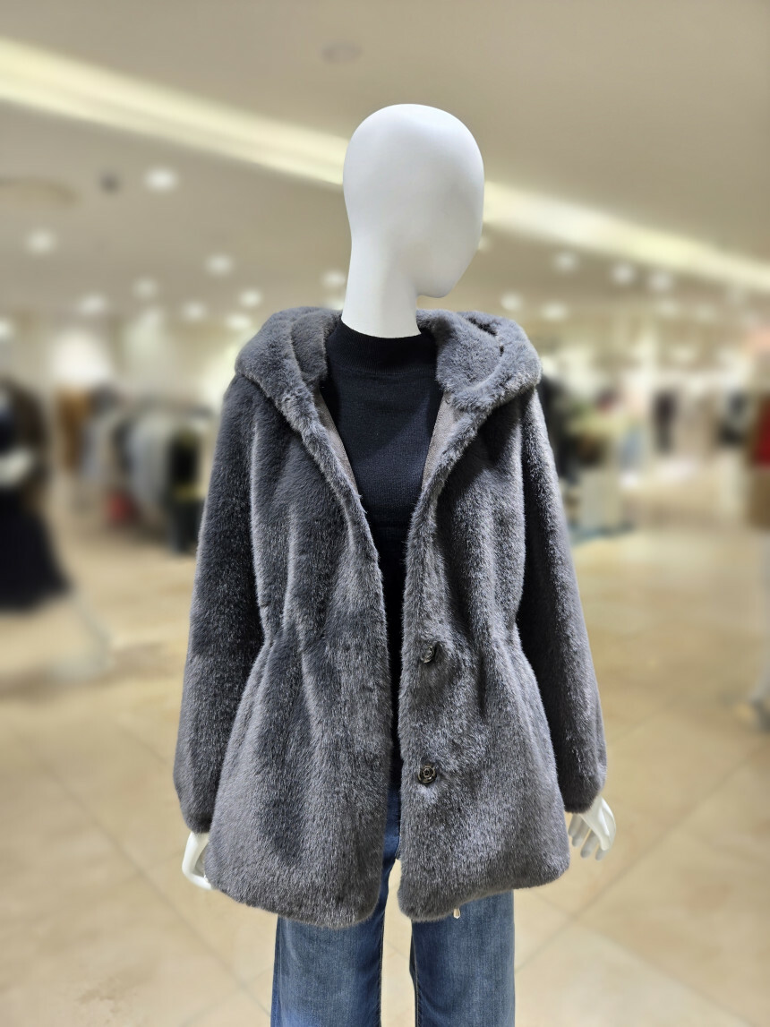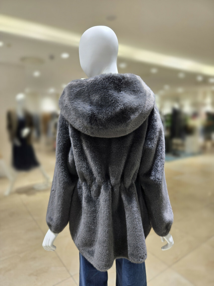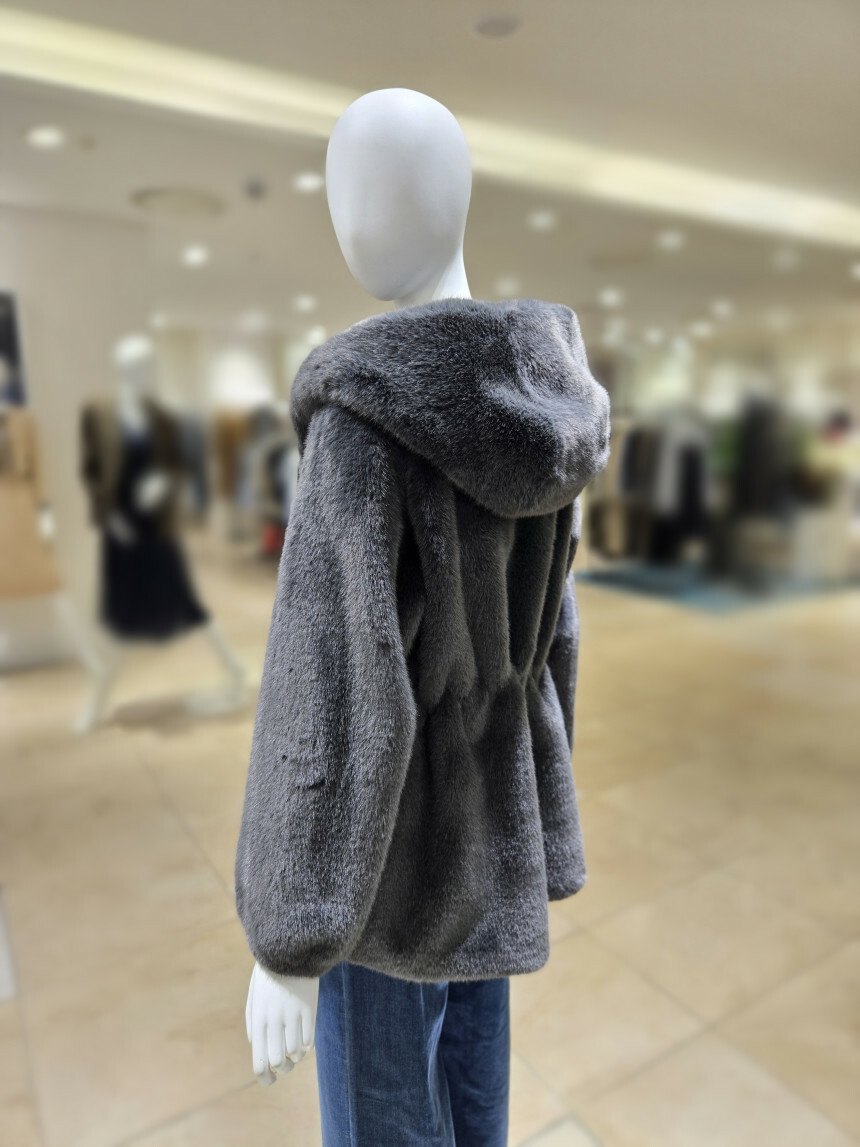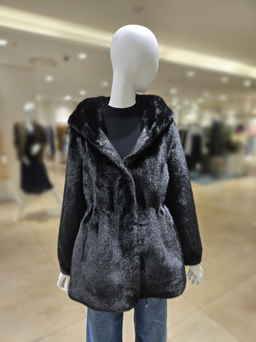웨이스트 스트링 후드 페이크 퍼 하프 코트 YW5X-M983