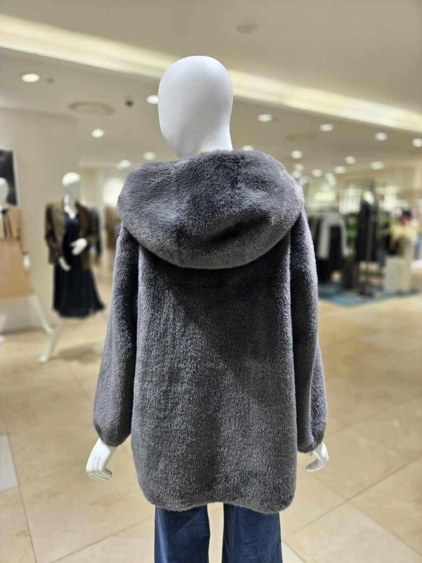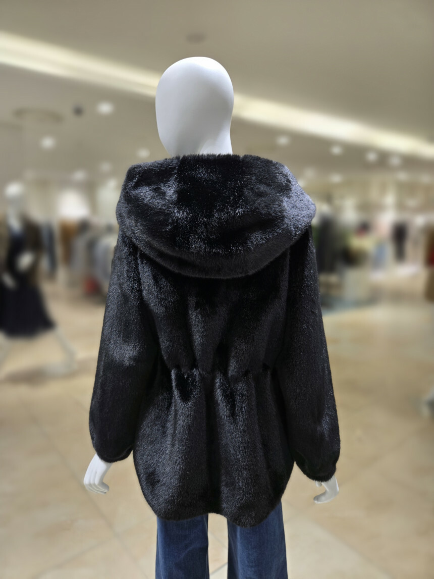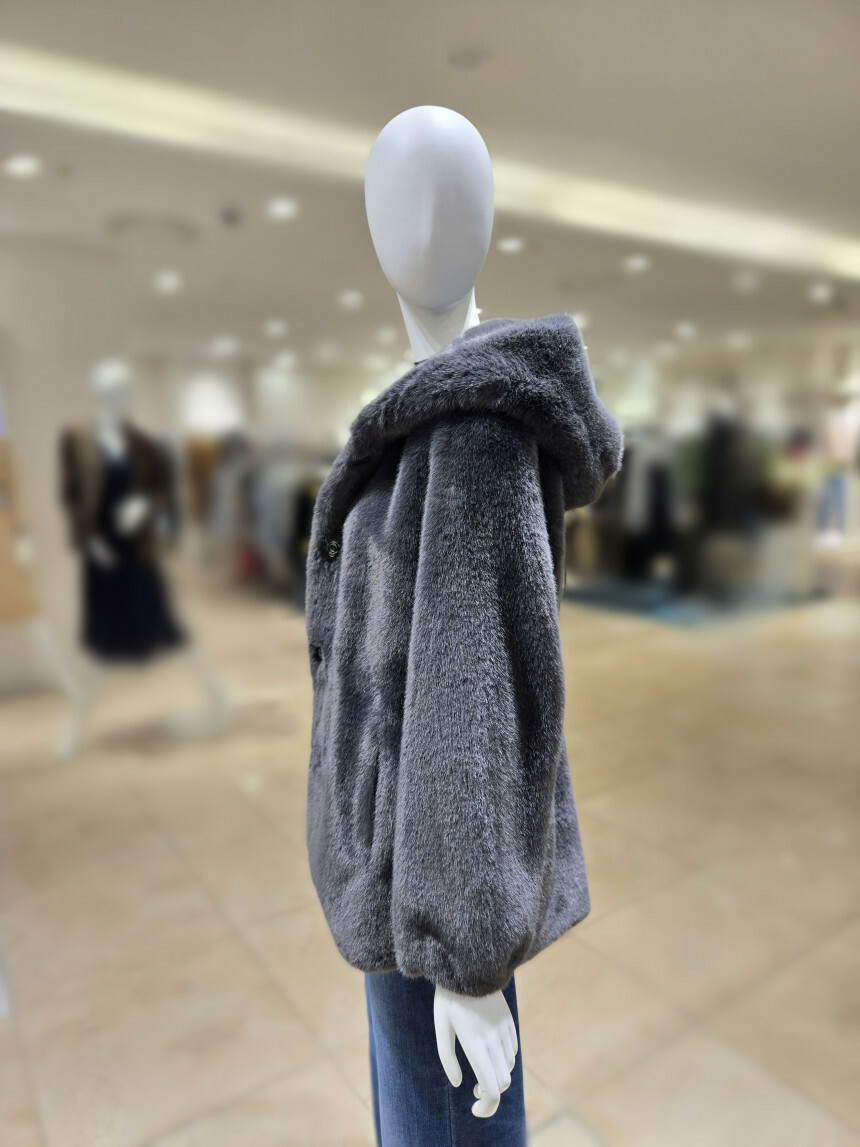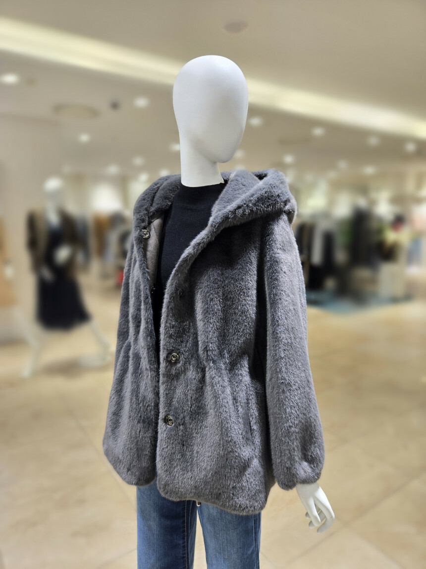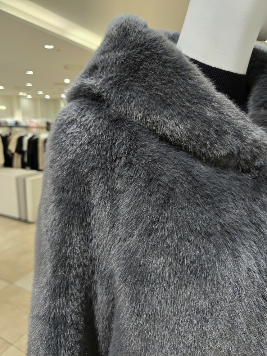 웨이스트 스트링 후드 페이크 퍼 하프 코트 YW5X-M983