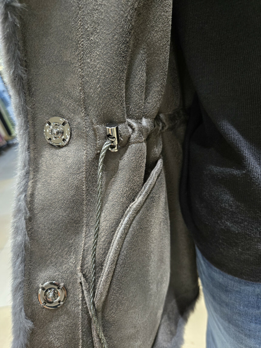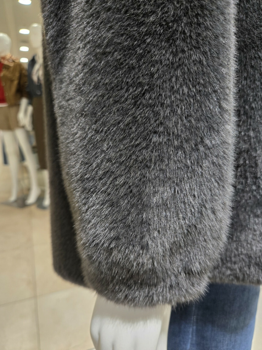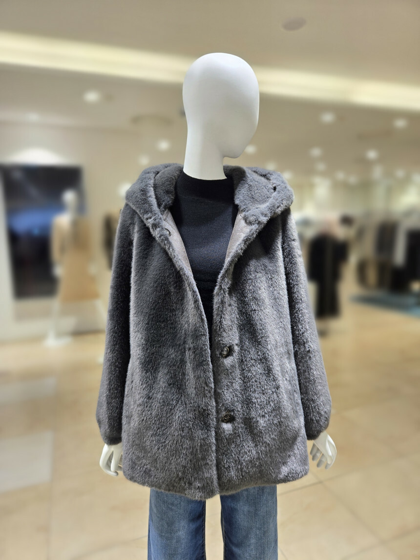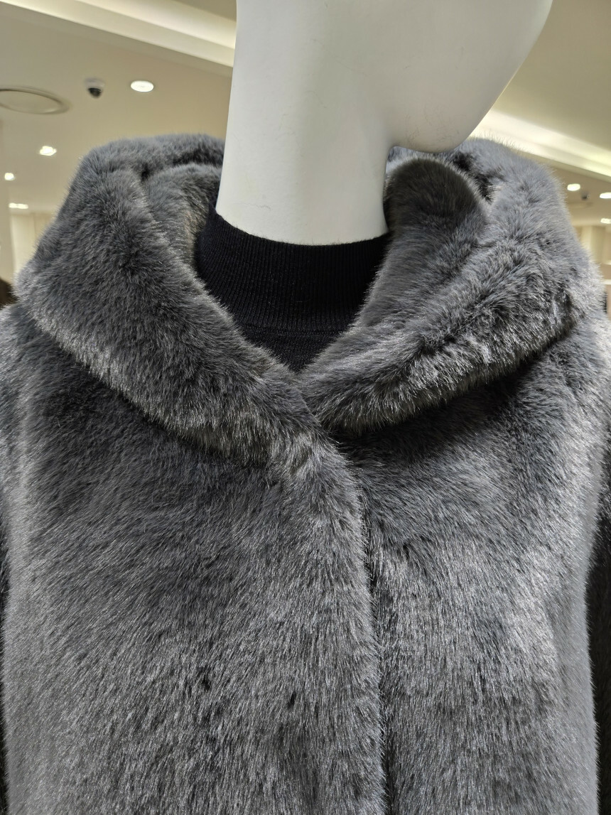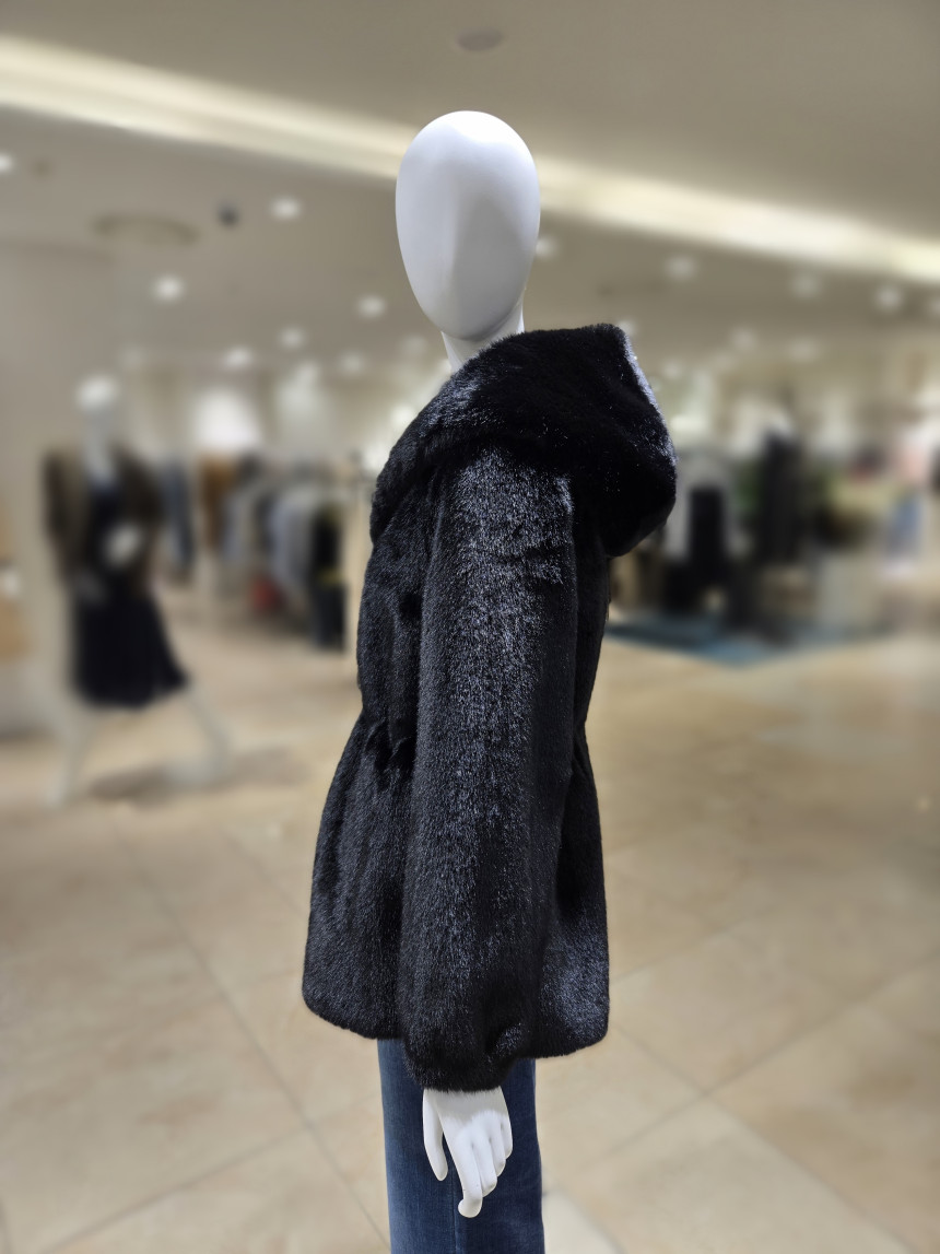 웨이스트 스트링 후드 페이크 퍼 하프 코트 YW5X-M983