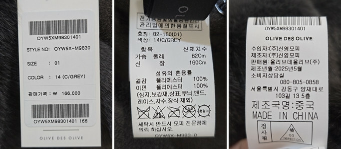 · 안감 : □ 전체 □ 부분 ■ 없음