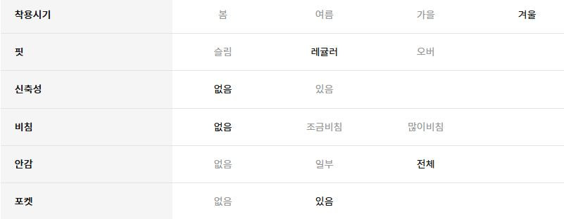 · 겉감 : 폴리에스터35 레이온32 모26 폴리우레탄7
