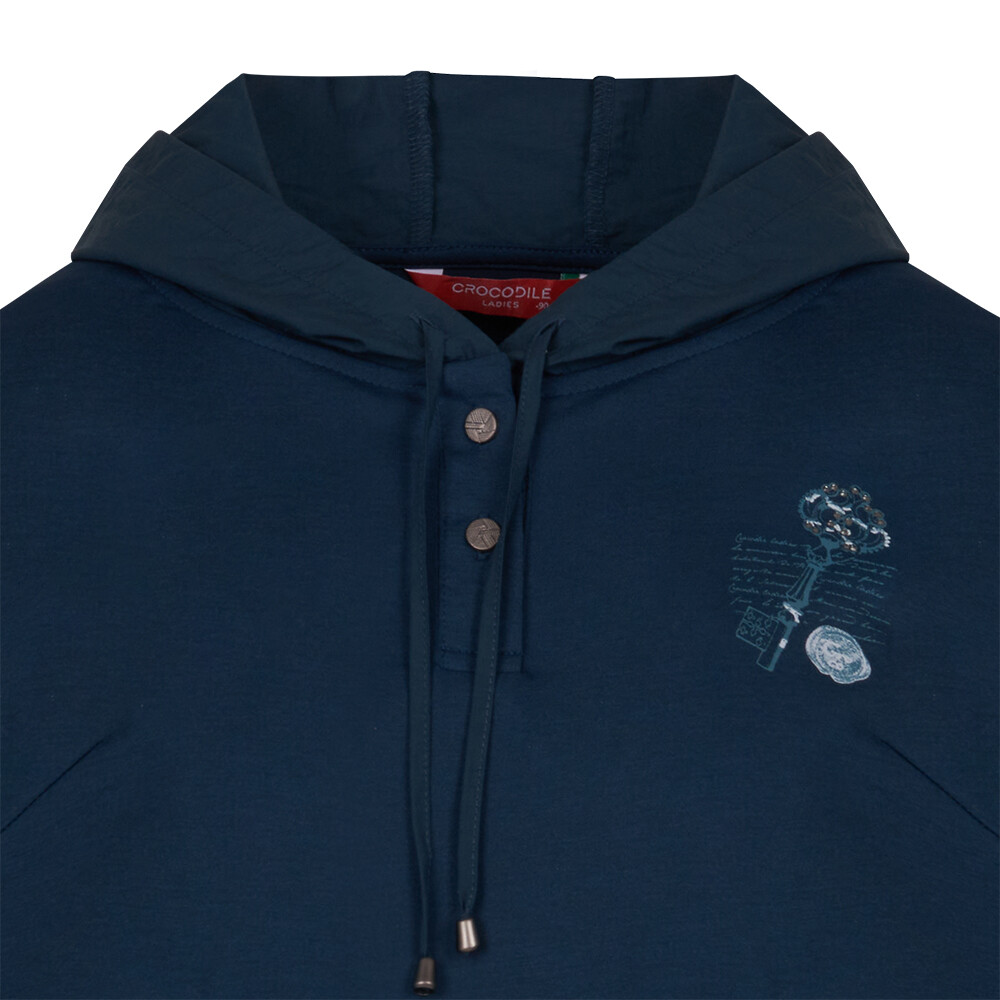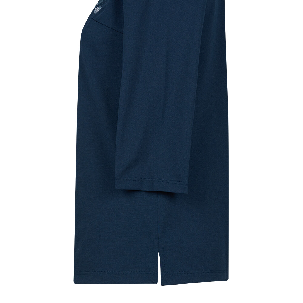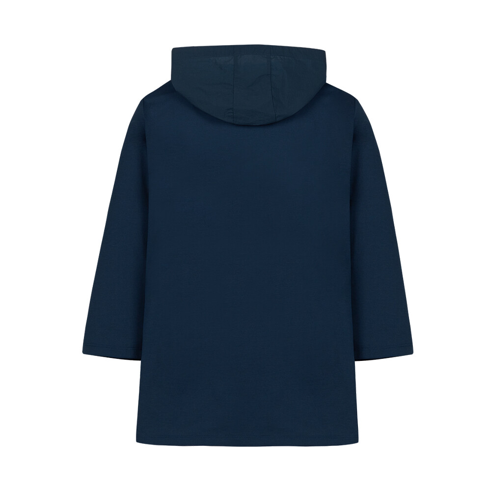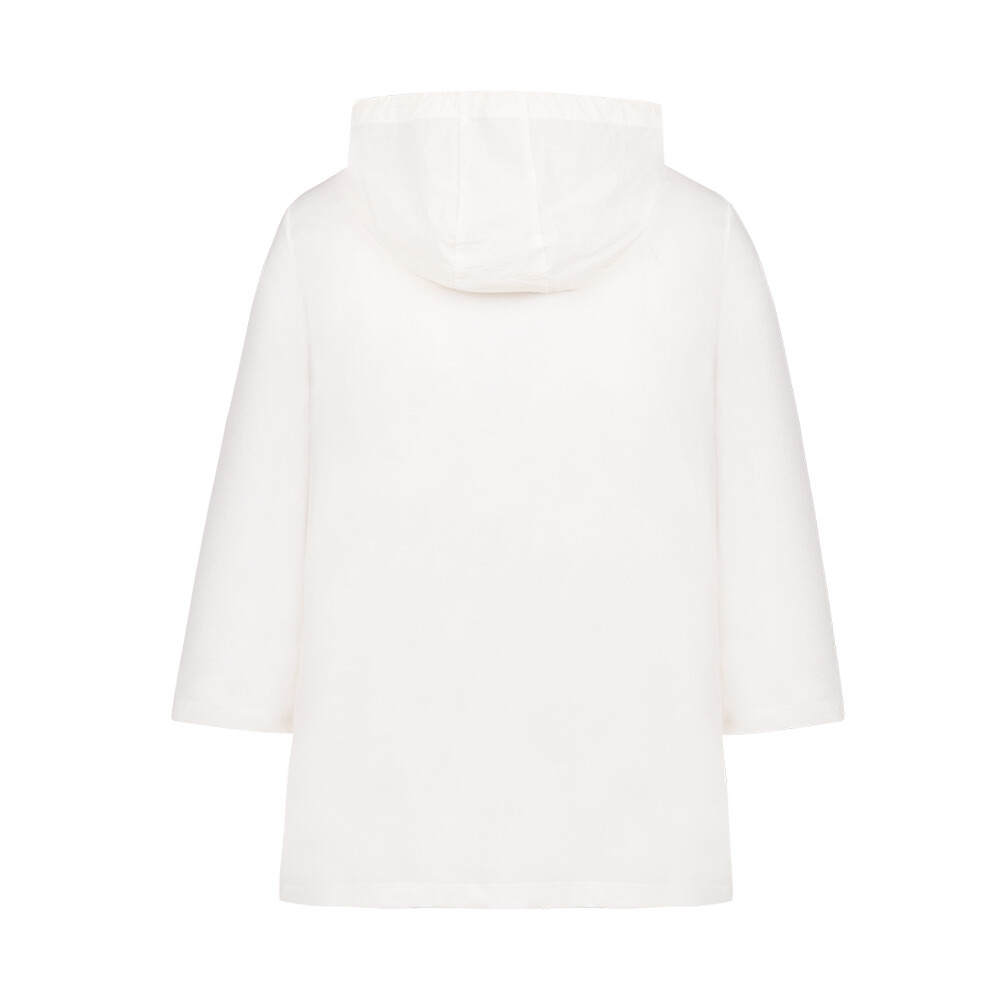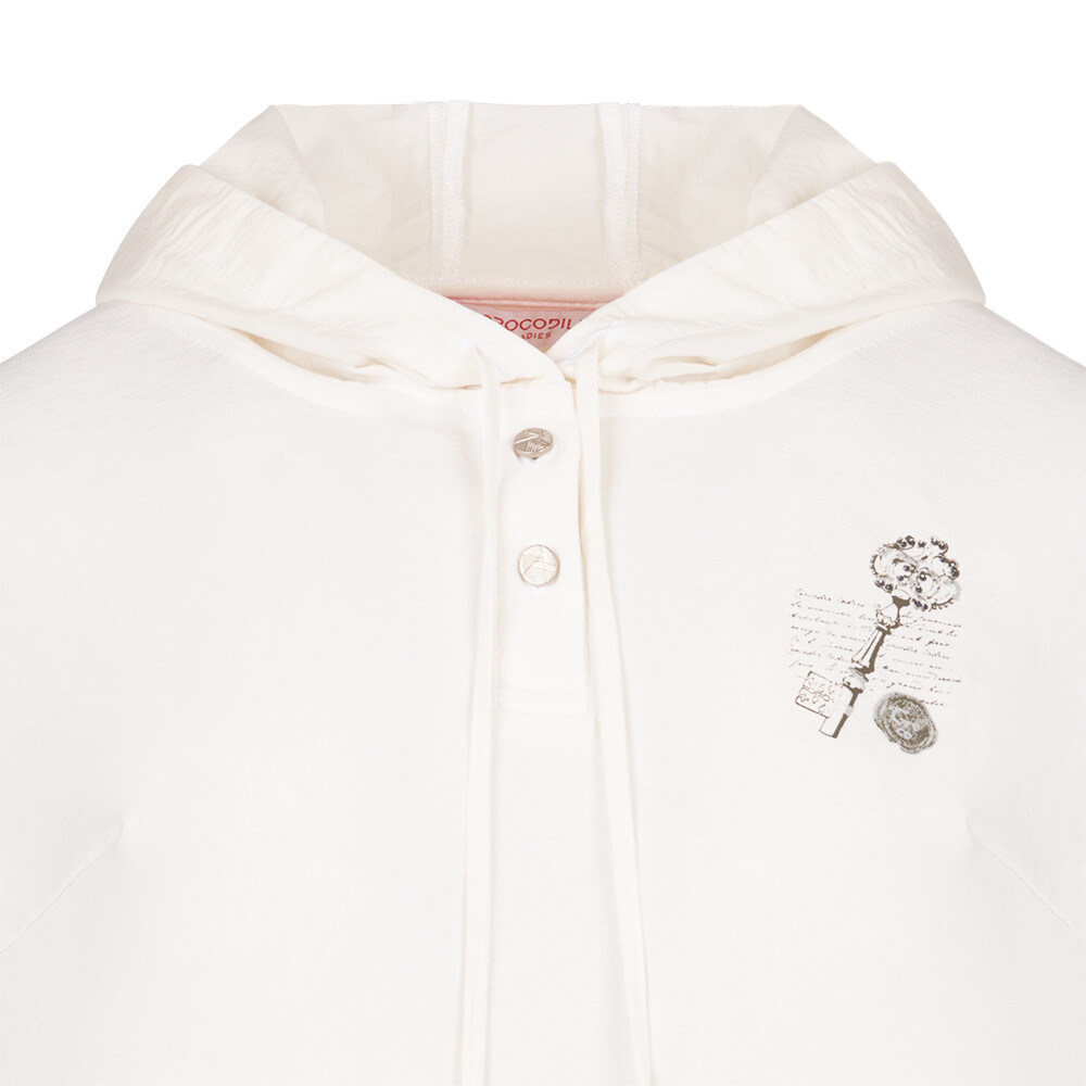 잠재권축사와 우븐믹스하였으며 앞판 프린트가 귀여운 깔끔한 스타일의 7부 후드 티셔츠