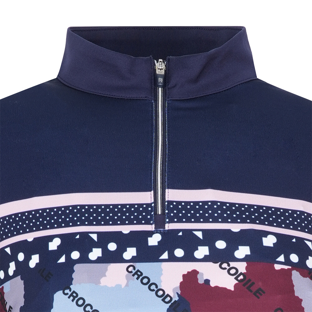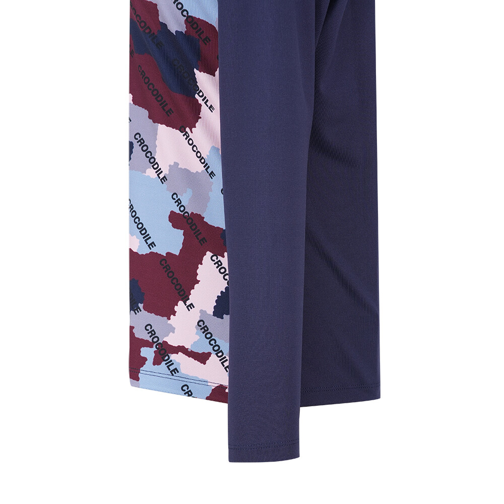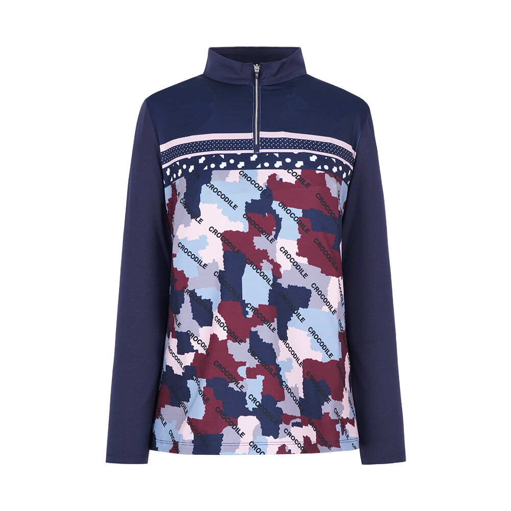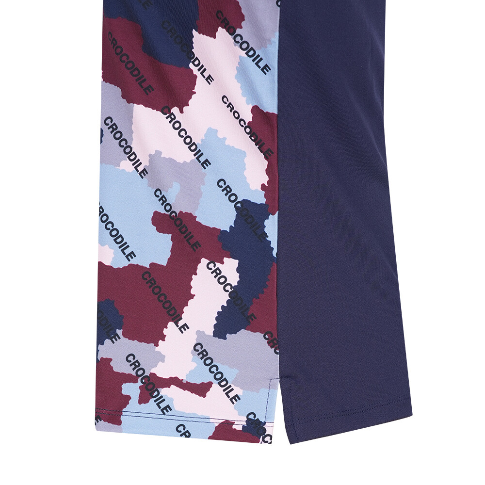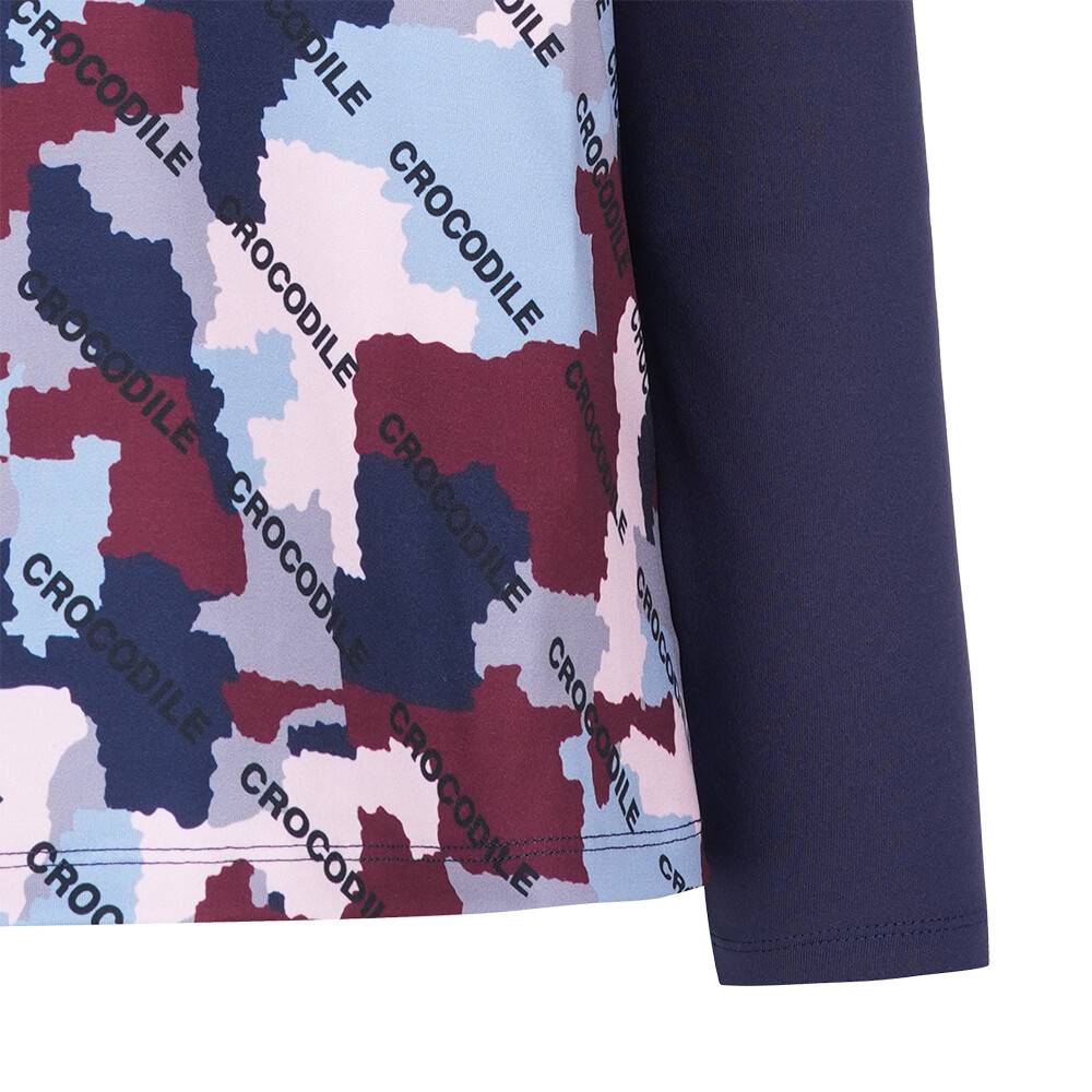 코트나 소재로 착용감이 부드럽고 앞판 기하학프린트가 포인트인 반집업 티셔츠