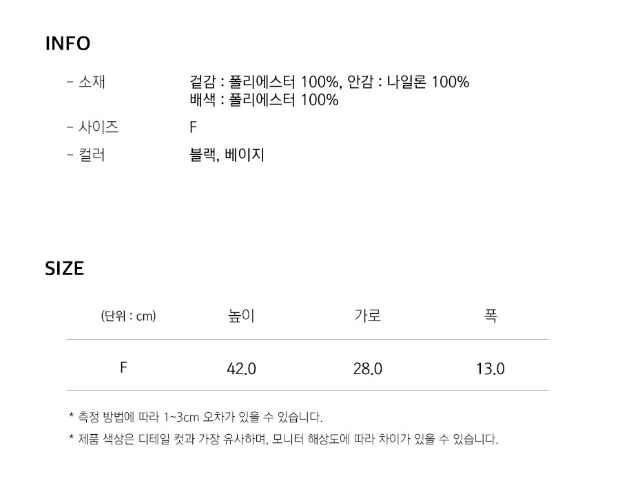 재질 : 겉감-폴리에스터100% 안감-나일론100% 배색-폴리에스터100%