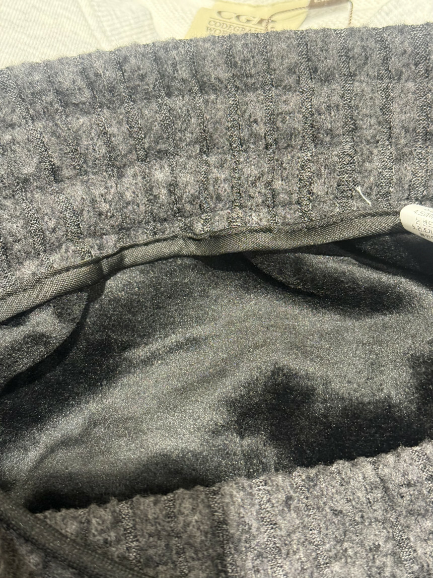 - 겉감 : 폴리에스테르 77%, 레이온 19%, 폴리우레탄 4%