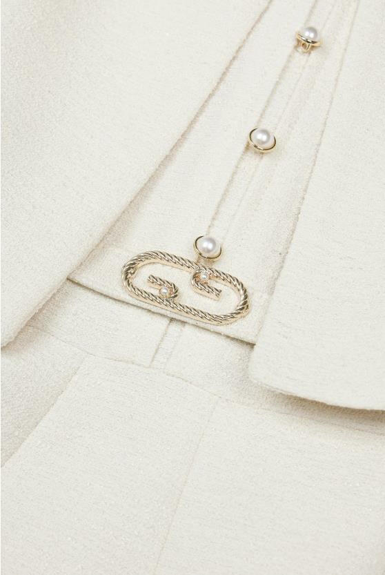 크롭 기장의 자켓이 허리를 자연스럽게 강조해주며|*|