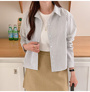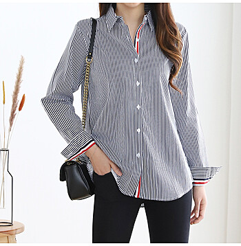 - 소매롤업 테잎배색 스트라이프 셔츠_O2501BL011A)