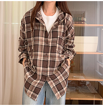 - 체크 루즈핏 긴팔 셔츠_O2509BL602C)