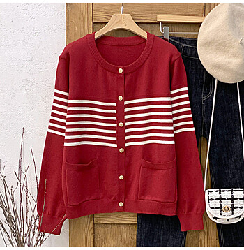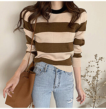 - 데일리 오픈카라 줄지 긴팔 니트_O2408KN609C_C)