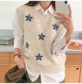 - 반오픈 서클 자수 루즈핏 블라우스_PD2506BL607B)