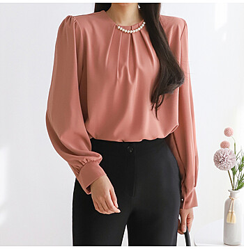- 목걸이 탈부착 돌먼소매 블라우스_PD2506BL604B_L)