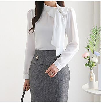- [타이세트]슬릿소매 타이 블라우스_PM2506BL043B)