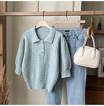 - 슬릿카라 골지 반팔 니트_PD2506KN612B)