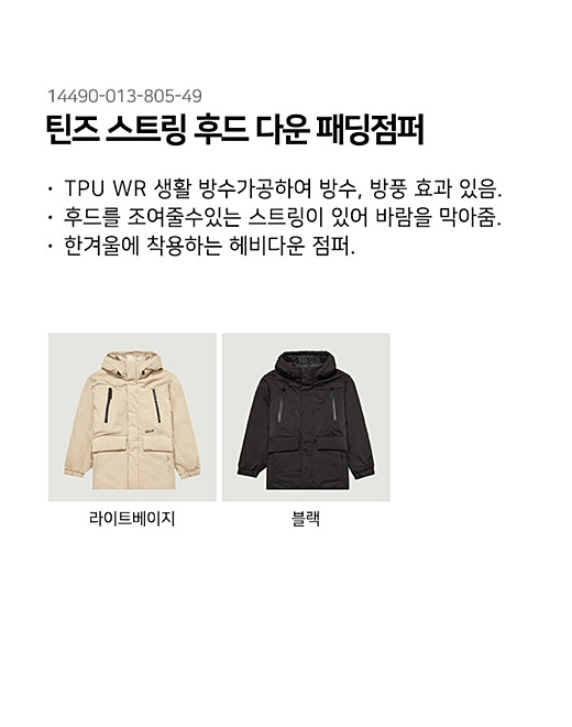 | 1. 제품 소재 (섬유의 조성 또는 혼용률을 백분율로 표시, 기능성인 경우 성적서 또는 허가서) | 상품상세참조 |