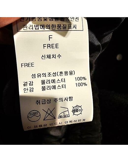 | 1. 제품 소재 (섬유의 조성 또는 혼용률을 백분율로 표시, 기능성인 경우 성적서 또는 허가서) | 겉감 안감 폴리에스터 100% |