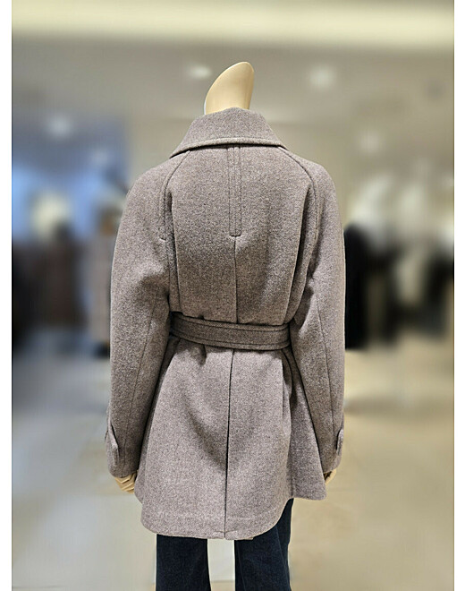 | 1. 제품 소재 (섬유의 조성 또는 혼용률을 백분율로 표시, 기능성인 경우 성적서 또는 허가서) | 겉감:모73%폴리에스터23%레이온4%,안감:폴리에스터100%,배색:모60% |