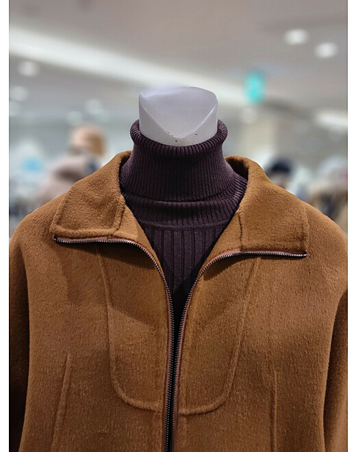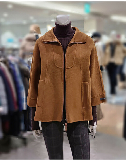 | 1. 제품 소재 (섬유의 조성 또는 혼용률을 백분율로 표시, 기능성인 경우 성적서 또는 허가서) | 겉감: 울 80%, 나일론 15%, 캐시미어 5%, 안감: 폴리에스테르 100% |