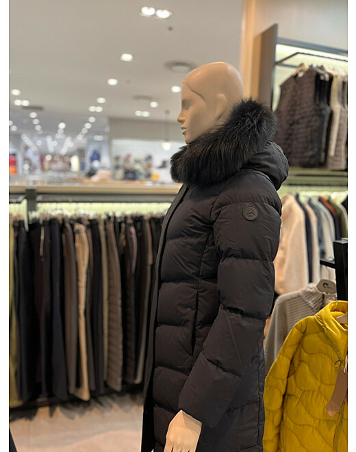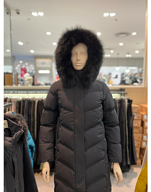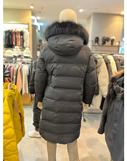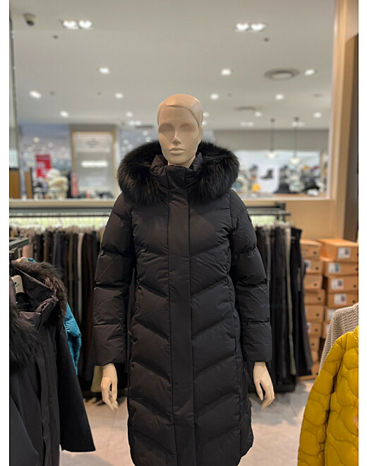 1. 제품 소재 (섬유의 조성 또는 혼용률을 백분율로 표시, 기능성인 경우 성적서 또는 허가서) | 겉감 폴리에스터 100% / 배색 천연모피(여우) 100% / 소맷단 폴 |