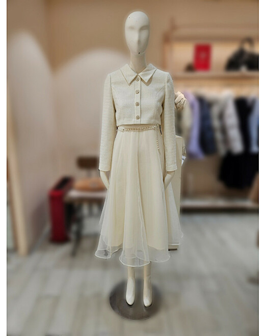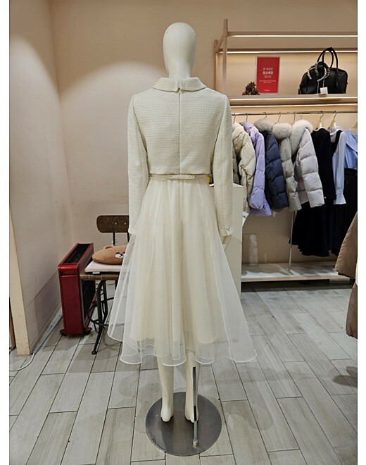 1. 제품 소재 (섬유의 조성 또는 혼용률을 백분율로 표시, 기능성인 경우 성적서 또는 허가서) | 겉감:폴리에스테르 82%, 모 18% / 안감:폴리에스테르 100%, 레이스 |