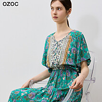 - [오조크(OZOC)] 퍼프 소매 브이넥 롱 원피스 (택가격: 113000원))