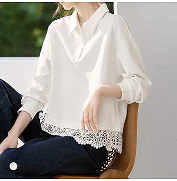 - 화세 레이스헴라인티셔츠_HB5FTS009C)