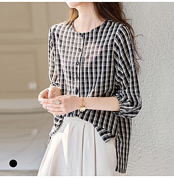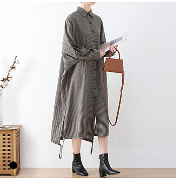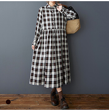 - 화세 하프버튼셔링체크원피스_HB5FOP014C)