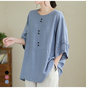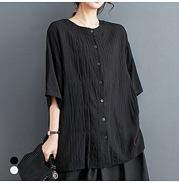 - 화세 핀턱폴딩라운드넥블라우스_HL6MBL004C)