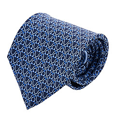 (페라가모) 35 0937 F BLU SCURO 0768208 남성 웨이브 프린트 실크 타이