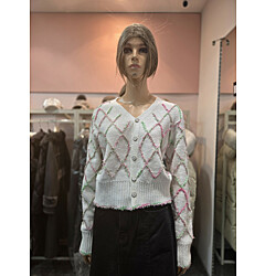 플라워 패턴 자카드 니트 집업 가디건 ES1KG-660