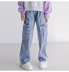 버블트리 [P426]블록카고데님팬츠