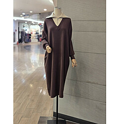 (발렌시아)카라 집업 배색 롱 니트 원피스 24AGK51