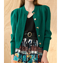 버튼포인트 볼륨소매 크롭 니트 가디건