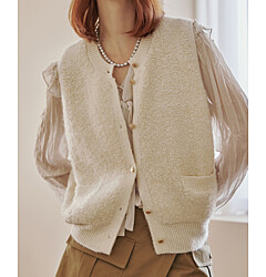 부클얀 포켓 라운드넥 버튼업 니트 베스트