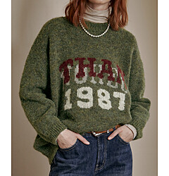 레터링 멜란지 울혼방 루즈핏 라운드넥 니트