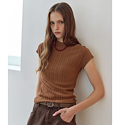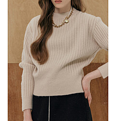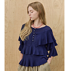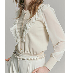 프릴 핀턱 쉬폰소매 라운드넥 니트