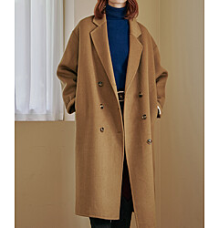 더블 브레스티드 울혼방 핸드메이드 롱 프록코트