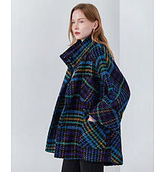 빅체크 울 부클 하이넥 루즈핏 하프 코트