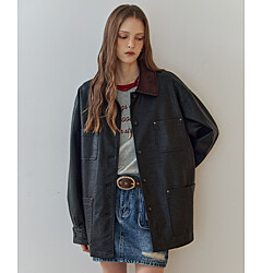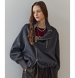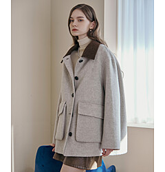 배색 스탠카라 핸드메이드 울 워크 자켓