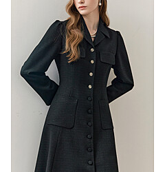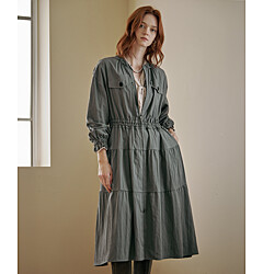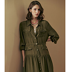 골드버튼 아웃포켓 벨티드 셔링 롱 원피스