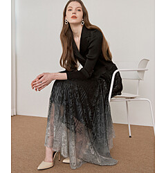 라운드 쉬폰 자수 볼륨 플레어 롱 스커트
