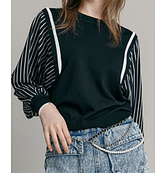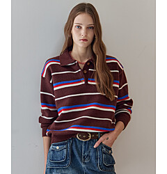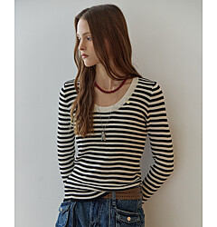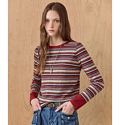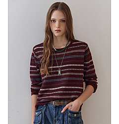 컬러 믹스 스트라이프 배색 라운드넥 니트