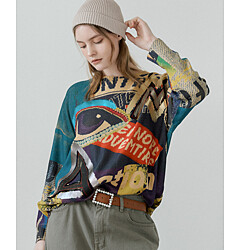 팝아트 레터링 프린팅 루즈핏 라운드 니트(봄버전)