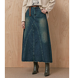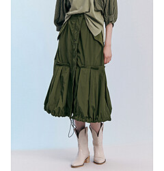 집업 스트링 핀턱 플랩 포켓 롱 스커트