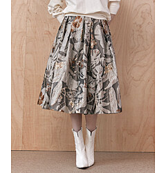 메탈릭 자카드 볼륨 핀턱 플레어 롱스커트